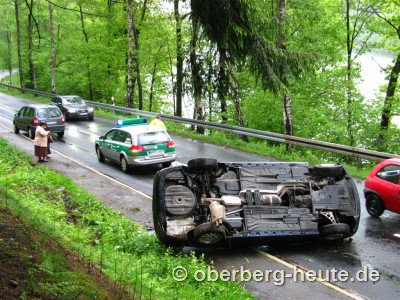 Gummersbach - Außer Kontrolle geriet heute Nachmittag am Unfallschwerpunkt zwischen Lantenbach und der Aggermauer ein PKW, der auf regennasser Straße ins Schleudern kam, sich mehrfach überschlug und schließlich auf der Seite landete…