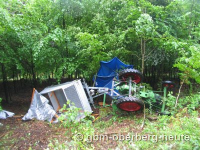 Wildbergerhütte - Ein mit 17 Personen besetzter Trecker-Anhänger kam heute Nachmittag auf einem geteerten Waldweg an der „Bärenhardt“ von der Fahrbahn ab und kippte eine Böschung hinunter. Ein 17-Jähriger und ein 19-Jähriger wurden bei dem Unfall schwer verletzt…