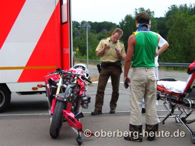 Der Kradfahrer stürzte und verletzte sich leicht. Am Krad entstand hoher Sachschaden. (oh-30.07.2006 14:00)