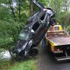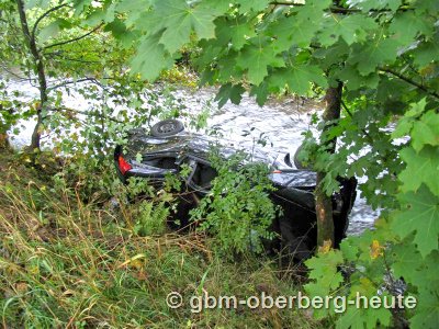 Ausgangs einer Rechtskurve war der 20-jährige Fahrer, der bei dem Unfall leicht verletzt wurde, auf der rutschigen Fahrbahn der Wissener Straße ins Schliddern geraten, über die Fahrbahn auf den linken unbefestigten Randstreifen gefahren, gegen vier Straßenbäume geprallt und eine steile Böschung hinunter gerutscht. Der PKW landete auf der Seite liegend im Bach. Der Fahrer konnte sich selbständig aus seinem völlig zerstörten Fahrzeug retten. Die Feuerwehr Morsbach leistete technische Hilfe. Die Polizei nennt als Unfallursache nicht angepasste Geschwindigkeit. (oh-06.10.2006 13:19)