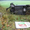 Eine entgegen kommende Autofahrerin berichtete, dass sie nur knapp einer Kollision mit dem VW-Golf entgangen sei, der kreuz und quer über die Straße geschleudert sei, bevor er gegen einen Baum prallte, wieder zurück auf die Fahrbahn schoss, das Verkehrsschild zur Ländergrenze niederwalzte und schließlich auf der Seite liegend im Graben landete.