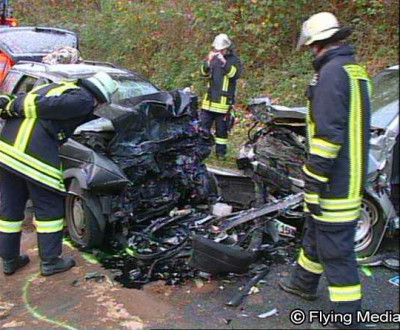 Für die 45-jährige Passatfahrerin aus Lindlar kam jedoch jede Hilfe zu spät. Die Mutter von drei Kindern starb noch an der Unfallstelle. Sie war aus bislang ungeklärter Ursache heute Morgen, gegen 7 Uhr, mit ihrem Pkw in einer lang gezogenen Linkskurve auf der L284, zwischen Hommerich und Scheurenhof, in den Gegenverkehr geraten und kollidierte dort mit einem Jeep. Die ebenfalls 45-jährge Jeepfahrerin wurde bei dem Unfall schwer verletzt. Die L284 war bis 11:00 Uhr voll gesperrt. (oh-02.11.2006 11:27)