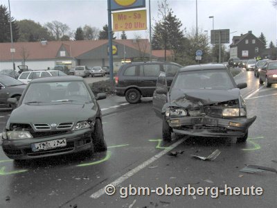 Am 11.11.2006, gegen 09:30 Uhr, befuhr ein 51-jähriger Mann aus Ruppichteroth die Kölner Straße aus Richtung Wiehlmünden kommend in Richtung Ortskern Osberghausen. In Höhe der Bushaltestelle beabsichtigte er, auf der Fahrbahn zu wenden. Dabei übersah er den entgegenkommenden Pkw eines 21-jährigen Mannes aus Engelskirchen wodurch es zum Zusammenstoss der beiden Fahrzeuge kam. An beiden Fahrzeugen entstand erheblicher Sachschaden.