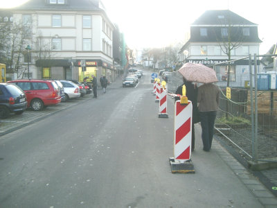 Letzten Freitag ging die 46-Jährige um 18.06 Uhr, bei Dunkelheit und Regen, mit einer Begleiterin über den Behelfsgehweg an einer Baustelle der Kurfürst-Heinrich-Straße entlang in Richtung Kolpingstraße.