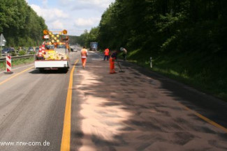 Weiershagen - Eine auf der Autobahn liegende Bremsscheibe wurde durch einen Tanklastwagen überrollt und in die Höhe geschleudert. Das Metall schnitt den Tank auf. Mehrere hundert Liter Dieselkraftstoff flossen über die Fahrbahn...