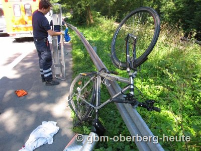 Der Fahrer wurde bei der Kollision mit dem überholenden PKW mit seinem Rad gegen die Leitplanke geschleudert. Er wurde nach notärztlicher Versorgung an der Unfallstelle mit dem Rettungshubschrauber "Christoph 25" in eine Spezialklinik geflogen. Die L 336 war in Höhe der Unfallstelle vorübergehend gesperrt. (oh-04.08.2007 21:14) (oh-05.08.2007 13:26)