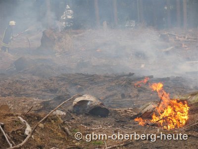 Nach ersten Erkenntnissen war aus bislang ungeklärter Ursache an einem großen Holzstoß ein Feuer entstanden, das möglicherweise durch Funkenflug weitere Brandstellen auf der gerodeten Waldfläche verursachte. Die Feuerwehr Waldbröl konnte durch schnelles Eingreifen ein Ausbreiten des Feuers verhindern. (oh-14.09.2007 22:31)