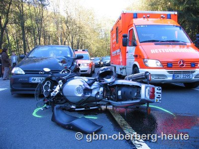 Der Kradfahrer und seine 15-jährige Sozia wurden von der Maschine geschleudert und schwer, die Pkw-Fahrerin und ihre 28-jährige Beifahrerin leicht verletzt. Es entstand hoher Sachschaden. (oh-21.10.2007 07:29)