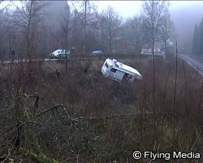 In Bergneustadt brachen sie in eine Schule ein und fanden dort den Schlüssel zu einem vor dem Gebäude stehenden Iveco Wohnmobil. Zumindest einer der Jugendlichen kannte sich als Schüler dieser Schule in dem Gebäude aus. Mit dem Schlüssel starteten sie das größere Fahrzeug. Da dieses jedoch nicht zugelassenen war, montierten sie zunächst die Kennzeichen von einem daneben stehenden Fahrzeug ab und befestigten diese Nummernschilder an dem Wohnmobil. Die anschließende nächtliche Spritztour endete dann am frühen Morgen auf einer schmalen Straße in Attendorn-Erlen. Dort verlor der 17-Jährige Fahrer, der natürlich keine Fahrerlaubnis hat, die Kontrolle über das große Fahrzeug. Das Wohnmobil kam von der Straße ab und rutschte eine rund sechs Meter tiefe Böschung hinunter. Hierbei wurden alle fünf Jugendlichen verletzt. Alle wurden zunächst in Krankenhäuser nach Olpe und Attendorn gebracht. Zwei 14 und 16 Jahre alte Mädchen befinden sich mit Knochenbrüchen noch im Krankenhaus. Die anderen werden derzeit bei der Olper Polizei vernommen.