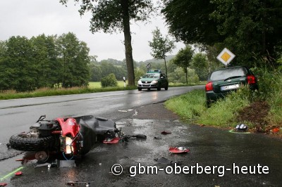 Nümbrecht - Bei einem Abbiegevorgang wurde ein 20-jähriger Rollerfahrer von einem nachfolgenden Transporter angefahren, auf die Gegenfahrbahn gestoßen und dort von einem PKW überfahren. Das Auto prallte im Straßengraben gegen ein Schild.