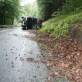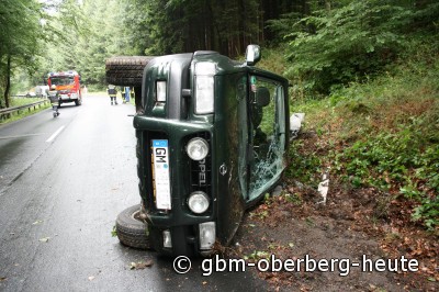 Morsbach - Bei Frankenthal geriet heute Vormittag ein 67-jähriger Fahrer mit seinem Opel Frontera ins Schleudern, kam von der Fahrbahn ab und rutschte in eine Böschung. Der PKW drehte sich um die eigene Achse und kippte auf die Seite.
