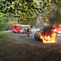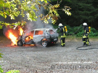 Wie uns die Polizei mitteilte, steckte der Autofahrer sein Fahrzeug selbst in Brand. Die Feuerwehr rückte mit zwei Löschzügen an und hatte den Fahrzeugbrand rasch unter Kontrolle. Am PKW entstand Totalschaden. (oh-13.10.2008 22:14)