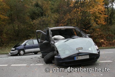 Gegen 14:35 Uhr, befuhr am Dienstag ein 33-jähriger Autofahrer aus Olpe die L 324 von Odenspiel in Richtung Wildbergerhütte. An der Einmündung zur Odenspieler Straße bog er links ab und übersah dabei den entgegenkommenden PKW einer 43-jährigen Frau aus Reichshof. Es kam zum Zusammenstoß der beiden Fahrzeuge, wodurch die 43-jährige Autofahrerin leichte Verletzungen davontrug. Ihre fünfjährige Tochter, die auf dem Rücksitz des PKW mitfuhr, wurde ebenfalls leicht verletzt. Es entstand hoher Sachschaden. (oh-16.10.2008 00:38)