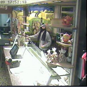 Das Bild zeigt einen der Täter bei der Tatausführung.