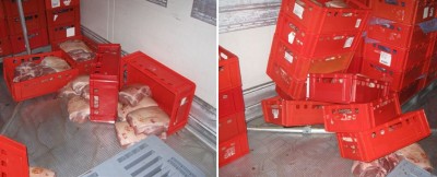 Zum Weitertransport hatten die beiden Männer überdies schon versucht, das Fleisch vom dreckigen Laderaumboden aufzusammeln - den sie mit ihren von Schlamm verschmutzten Schuhen betreten hatten - und wieder in die Transportschalen zu legen. Der Lebensmittelkontrolleur der Kreisverwaltung verplombte den LKW, der nun am Standort der Spedition einer erneuten Untersuchung unterzogen wird. Es sei damit zu rechnen, dass in vorliegendem Fall eine erhebliche Summe an Bußgeld auf den Spediteur zukomme, berichtet die Polizei. Sollte sich herausstellen, dass, wie derzeit vermutet wird, der verantwortliche Fahrer obendrein auch kein aktuelles Gesundheitszeugnis vorweisen kann, wird sich, so die Kreisverwaltung, die Bußgeldsumme noch einmal um ein Vielfaches erhöhen. (red.-17.03.2009 11:58)