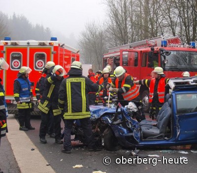 Ein 28-jähriger Feuerwehrmann aus Wiehl wurde an einer Straßensperrung von einem 62-jährigen Daimler-Fahrer angefahren und verletzt. Die Sperrung war wegen dieses Unfalls erfolgt, bei dem am Sonntag zwei Menschen schwer verletzt wurden. Eine Person war im Fahrzeug eingeklemmt und musste von der Feuwehr befreit werden.