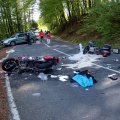 Lindlar - Nach einem Überholmanöver geriet am Sonntagnachmittag ein 44-jähriger Motorradfahrer auf die Gegenfahrbahn und stieß frontal mit dem entgegenkommenden Krad eines 46-Jährigen zusammen, der noch an der Unfallstelle verstarb. Bei dem Unfall wurden zwei weitere Personen schwer verletzt.