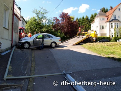 Am 30.05.2009, gegen 10.10 Uhr, befuhr ein 77-Jähriger mit seinem PKW die Hückeswagener Straße in Richtung Gummersbach-Zentrum. Offenbar kollabierte er plötzlich während der Fahrt und verlor die Kontrolle über den PKW. Das Fahrzeug geriet nach rechts an den Bordstein, überquerte dann nach rund 40 Metern die Fahrbahn und prallte gegen einen Laternenmast, der gegen die Dachschräge katapultiert wurde und dann in der Hauseinfahrt aufschlug. Der PKW prallte nach Querung der Einfahrt gegen die Hauswand und kam hier zum Stehen. Der 77-jährige Fahrer erlitt schwere Verletzungen und wurde nach Versorgung vor Ort mit dem Rettungshubschrauber „Christoph 3“ in eine Kölner Klinik gebracht.