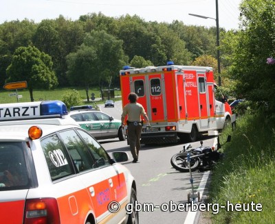 Um 16:45 Uhr wurden in Marienheide ein Motorradfahrer und seine Sozia bei einem Unfall im Kreuzungsbereich K 45 / K 44 in "Marienheide-Straße" schwer verletzt. Im Kreuzungsbereich hatte eine Autofahrerin kurz angehalten und geschaut, ob die Straße "frei" sei. Als sie anfuhr, kam es in der Mitte der Kreuzung zum Zusammenstoß mit einem von rechts auf der K 44 herannahenden 53-jährigen Kradfahrers aus Bochum. Durch den Aufprall wurde das Motorrad von der Fahrbahn geschleudert. Bei dem Unfall entstand hoher Sachschaden.