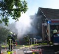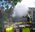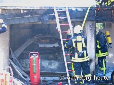 50 Feuerwehrkräfte kämpften am Samstagnachmittag gegen ein Feuer in einer Garage an. Nach rund zwei Stunden war der Brand gelöscht. Die Feuerwehr konnte auch verhindern, dass sich der Brand auf das angrenzende Wohnhaus ausbreitete. Schadenshöhe sowie Brandursache stehen noch nicht fest. (oh-16.08.2009 13:37)