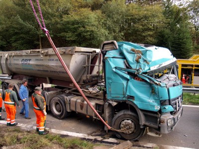 Im Zuge der Bergungsarbeiten waren die Abfahrt Derschlag und zeitweise auch die Auffahrt in Richtung Bergneustadt gesperrt. Da beim Entladen des LKWs keine maschinelle Hilfe eingesetzt werden konnte, war reine Muskelkraft gefragt. Bei dem Unfall entstand erheblicher Sachschaden. (d.bl.-04.09.2009 16:40)