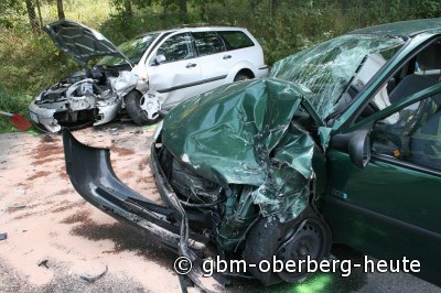 Durch die Wucht des Anpralls wurden der Unfallverursacher sowie der 20-jährige PKW-Fahrer und dessen beide 25-und 23-jährige Beifahrer leicht verletzt. An den beteiligten Fahrzeugen entstand erheblicher Sachschaden. Zur Reinigung der Fahrbahn und zur Bergung der Fahrzeuge wurden die L339 in Breundfeld und der Kreuzungsbereich an der Industriestraße in Waldbröl vorübergehend gesperrt. (oh-07.09.2009 23:49)