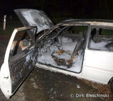 In nur wenigen Minuten hatte die Feuerwehr Engelskirchen den Brand mit Schaum gelöscht. Dennoch entstand am PKW Totalschaden. Die Fahrerin blieb unverletzt. Als Brandursache wird ein technischer Defekt vermutet. (db-26.11.2009 22:40)