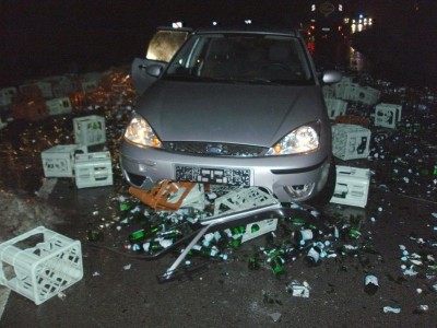 Hückeswagen - Mittwochfrüh befuhr ein 47-jähriger Lkw-Fahrer aus Dormagen um 04:55 Uhr die B 237 in Richtung Hückeswagen. In Höhe Kammerforsterhöhe verlor er in einer lang gezogenen Rechtskurve Teile seiner Ladung. Durch die herab fallenden Leergutkisten wurden zwei entgegenkommende Pkw beschädigt.