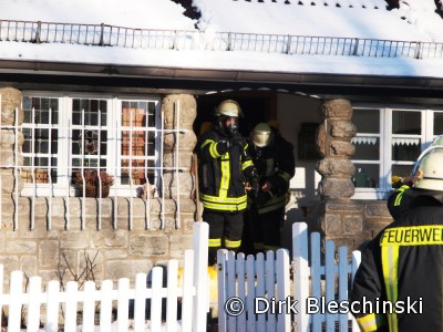 Aus dem betroffenen Gebäude war das schrille Heulen eines Rauchmelder zu hören. In einem Schornstein war es zu einem Brand gekommen, der bereits eine so große Hitze entwickelt hatte, dass die Kaminabdeckung auf dem Dach weggeplatzt war. Die Einsatzkräfte gingen unter Atemschutz in das verqualmte Gebäude vor. Durch das schnelle Handeln von Einsatzleiter Manfred Krämer und seinen Kameraden konnte großer Schaden verhindert werden. Nach den Maßnahmen der Feuerwehr konnte die Einsatzstelle an die Bewohner und den Bezirksschornsteinfegermeister übergeben werden. (Dirk Bleschinksi-10.03.2010 11:07)