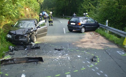 Hier prallte der Fahrer mit dem Fahrzeug einer entgegenkommenden 20-jährigen Autofahrerin frontal zusammen. Bei dem Zusammenstoß wurden beide Fahrer leicht verletzt. Es entstand hoher Sachschaden. (red.-06.08.2010 18:28)