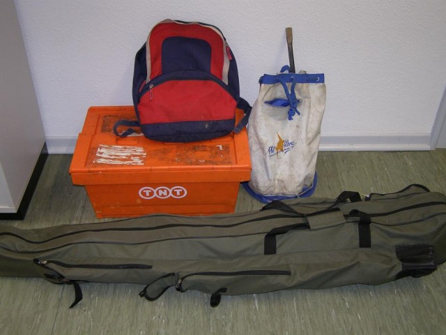 Am Freitag (21.01.) wurden die bislang unbekannten Täter gestört und ließen diverse Werkzeuge und Ausrüstungsgegenstände zurück. Dabei handelt es sich um eine orange Kunststoffkiste mit der Aufschrift "TNT", einen weiß-blauen Rucksack mit der Aufschrift "Phil Collins" und einen weiteren Rucksack mit dem handschriftlichen Namenszug "Bräutigam". Zudem ließen die Täter mehrere Angeln in einer speziellen Anglertasche am Tatort zurück.