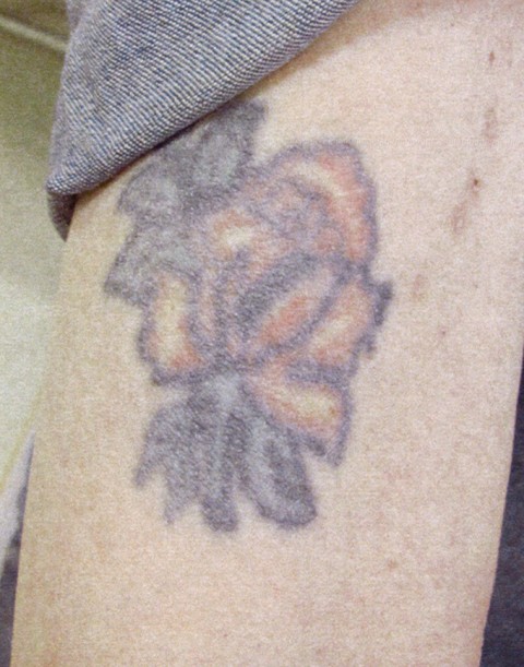 • Tattoo mit Bild einer Rose auf rechtem Oberarm