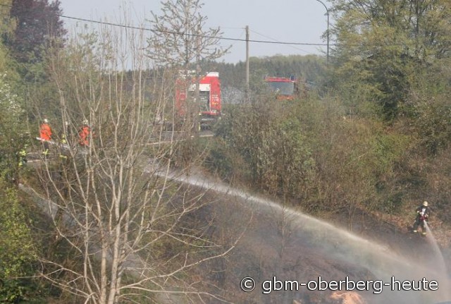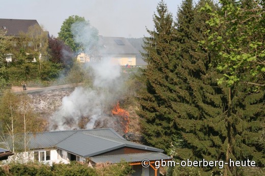 Morsbach - Schnell hatte die Feuerwehr Morsbach heute Nachmittag einen Flächenbrand unter Kontrolle, der sich hinter einer Schreinerei bedrohlich in Richtung Wald ausbreitete. Der trockene Boden, das noch dörre Gestrüpp und leichter Wind ließen die Flammen immer wieder auflodern.