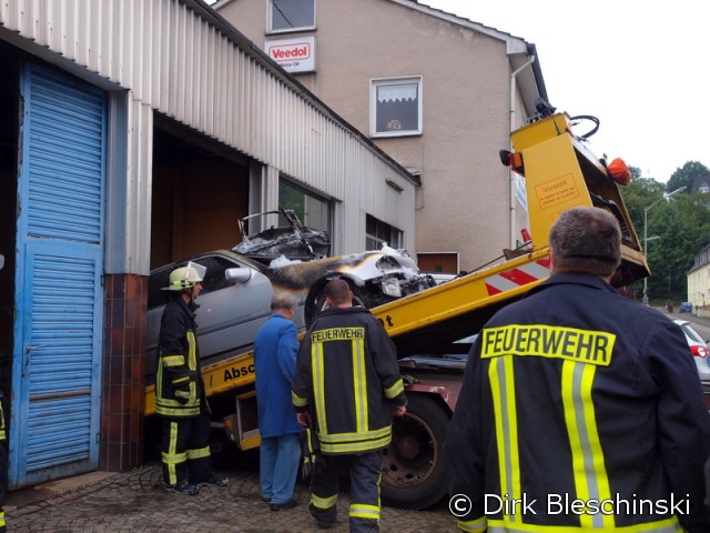 Dieringhausen - Ein Auto, das einen Tag zuvor in einen Unfall verwickelt war und in einer Werkstatt untergestellt wurde, stand aus bislang ungeklärten Gründen plötzlich in Flammen. Nach Aussage der Polizei vor Ort ist es wahrscheinlich, dass sich durch den Unfall ein Kurzschluss entwickelt hat, der zu dem Feuer führte.