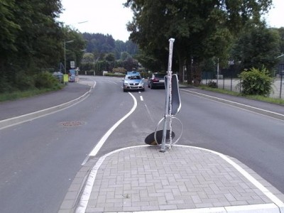 Hückeswagen - Am Sonntag (03.07.), um 13:35 Uhr entdeckten Zeugen die Beschädigungen an einem Verkehrszeichen auf der Bevertalstraße. Aufgrund der Unfallspuren ist davon auszugehen, dass ein Fahrer mit einem roten Fahrzeug die Bevertalstraße in Richtung Bevertalsperre befuhr. Im Verlauf einer leichten Rechtskurve geriet er nach links auf die Verkehrsinsel, wo er ein Verkehrzeichen mitsamt Mast überfuhr. Hinweise bitte an das Verkehrskommissariat Nord unter der Tel. Nr. 02261/81990. (red.-04.07.2011 15:16)