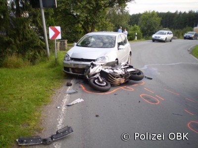 Der Kradfahrer war um 20:20 Uhr auf der Landstraße 284 von Roppersthal kommend in Richtung Lindlar unterwegs. In Höhe der Ortschaft Grünenberg, etwa 50 Meter hinter der Einmündung Agathaberg(K18),rutschte er in einer Rechtskurve auf den Gegenfahrstreifen und kollidierte dort mit dem entgegenkommenden Auto einer 38-jährigen Frau aus Gevelsberg. Durch die Wucht des Aufpralls zog sich der Motorradfahrer schwere Verletzungen zu. Er wurde mit einem Rettungswagen ins Krankenhaus gebracht, wo er stationär aufgenommen wurde. An beiden Fahrzeugen entstand erheblicher Sachschaden. (red.-03.08.2011 09:29)