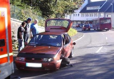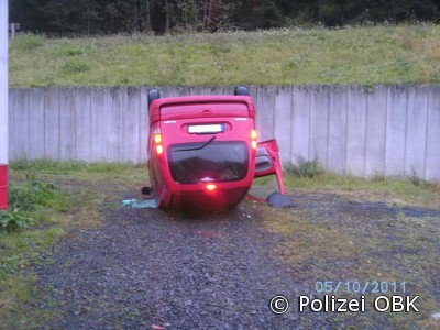 Durch den Aufprall kam die 35-Jährige mit ihrem Auto von der Fahrbahn ab und rutschte eine etwa sechs Meter lange Böschung hinab, wo das Fahrzeug auf dem Dach liegen blieb. Bei dem Unfall zog sie sich leichte Verletzungen zu, konnte jedoch selbstständig einen Arzt aufsuchen. An beiden Pkw entstand hoher Sachschaden. (red.-05.10.2011 13:44)