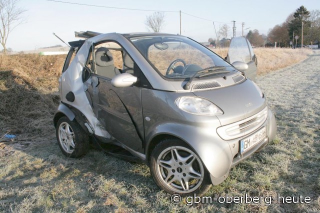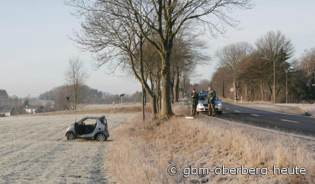 Der Smart-Fahrer war gegen 8:40 Uhr aus Richtung Lichtenberg kommend in Richtung Waldbröl unterwegs. Auf der eisglatten Fahrbahn rutschte der Kleinwagen in einer lang gezogenen Rechtskurve nach links von der Straße, prallte mit der Beifahrerseite gegen einen Baum und kam anschließend auf eine Wiese unterhalb einer Straßenböschung zum Stehen.
