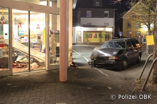 Das Unfallauto, ein blauer VW Passat, wurde bei dem Aufprall so stark beschädigt, dass es nicht mehr fahrbereit war. Auch an der Gebäudefassade und der Geschäftsauslage entstand hoher Sachschaden. Der unbekannte Fahrer flüchtete vor dem Eintreffen der Polizei von der Unfallstelle und konnte auch im Rahmen einer Fahndung nicht angetroffen werden.