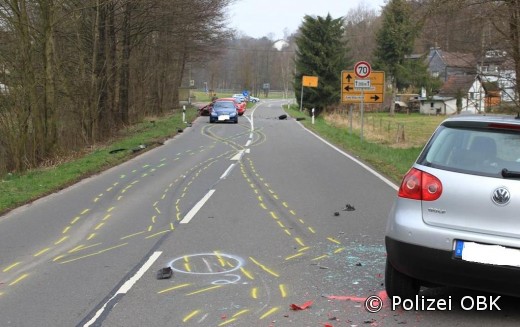 Bei der Kollision zogen sich eine 45-jährige Fahrerin und ein 20-jähriger Fahrer aus Wiehl leichte Verletzungen zu. Auch der 23-Jährige verletzte sich beim Zusammenstoss leicht. Er wurde ebenso wie die Wiehlerin mit einem Rettungswagen ins Krankenhaus gebracht und dort ambulant behandelt, während sich der 20-jährige Wiehler selbstständig in ärztliche Behandlung begeben konnte.