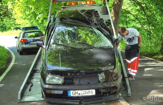 Engelskirchen - Ausgangs einer lang gezogenen Rechtskurve kam gestern Nachmittag ein 18-jähriger Fahranfänger auf der L 302 von der Fahrbahn ab. Der Pkw durchfuhr den Straßengraben, prallte mit der Fahrerseite gegen einen Baum und schleuderte wieder zurück auf die Straße. Der Fahrer sowie ein 19-jähriger Insasse, der hinten links saß, wurden schwer verletzt.