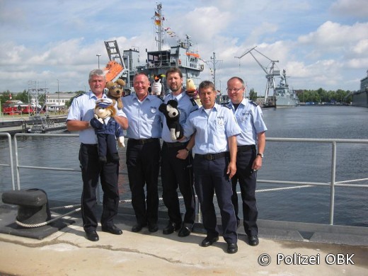 An der Nordseeküste … mit diesem Lied begrüßte „Polizeihund Wuschel“ die Kinder auf dem Marinearsenal in Wilhelmshaven. „Wuschel“ und seine Freunde, die Polizeipuppenspieler „Hacki“ Dirlenbach, Uwe Petsching und Erich Klick, sowie die Verkehrsicherheitsberater Hans Peter Schneider und Jürgen Poschner, waren Teilnehmer beim 20.Puppenbühnenfestival der Polizeidirektion Oldenburg.