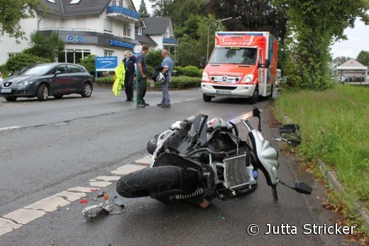 Nümbrecht - Mit schweren Verletzungen musste am Donnerstagnachmittag ein 15-jähriger Rollerfahrer aus Nümbrecht nach einem Verkehrsunfall auf der Winterborner Straße ins Krankenhaus eingeliefert werden. Ein Autofahrer hatte den Jugendlichen übersehen, der trotz eines Ausweichmanövers eine Kollision mit dem PKW nicht verhindern konnte.