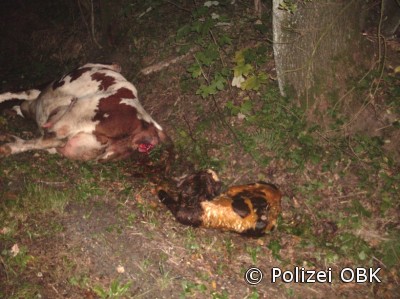 Unmittelbar nach ihrem Eintreffen am Einsatzort sahen sich die Ordnungshüter nämlich mit einer gänzlich anderen Situation konfrontiert. Die Kuh existierte tatsächlich, jedoch war das Tier nicht tot, sondern gerade dabei, den eigenen Nachwuchs das Licht der Welt erblicken zu lassen. Die Kuh war vermutlich aufgrund der Geburtswehen durch den Zaun in die Böschung gerutscht, wo sie sich selbstständig nicht mehr heraus bewegen konnte.
