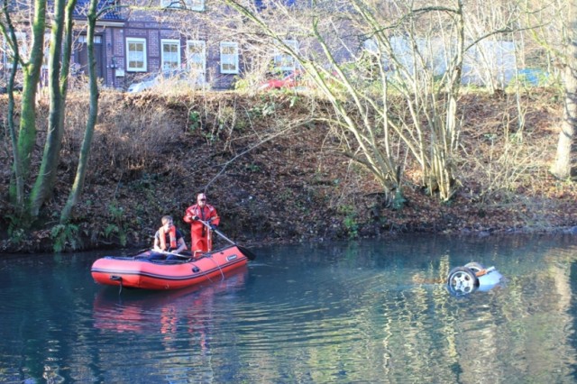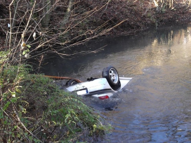 Anschließend kam das Auto der Fahrerin nach rechts von der Fahrbahn ab, rutschte eine Böschung hinab und landete in einem angrenzenden Fischteich. Die 21-Jährige konnte sich im Wasser selbstständig aus ihrem Fahrzeug befreien, musste jedoch dabei zusehen, wie ihr Auto im Teich versank.