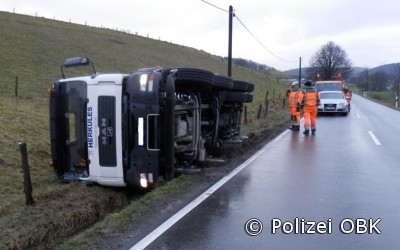 Dabei soll sich das Containerfahrzeug nach Zeugenaussagen teilweise auf dem Gegenfahrstreifen befunden haben. Um einen Zusammenstoß zu vermeiden, musste der 35-jährige mit seinem Betonmischer nach rechts ausweichen. Im weiteren Verlauf geriet das Fahrzeug in den Straßengraben und kam schließlich auf der Seite liegend zum Stillstand. Die Bergung des verunglückten 32-Tonners gestaltet sich aufwendig und langwierig. Die L 302 war zwischen Wipperfürth-Dohrgaul und Lindlar-Frielingsdorf in beiden Fahrtrichtungen gesperrt. Neben dem Lastwagen wurde auch eine Telefonleitung und ein Weidezaun auf einer Länge von etwa 20 Metern in Mitleidenschaft gezogen. Es entstand hoher Sachschaden.