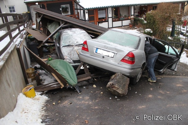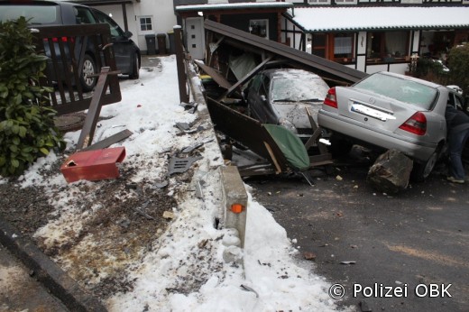 Engelskirchen - Weil ein 81-jähriger Pkw-Fahrer nach eigenen Angaben die Bremse mit dem Gaspedal verwechselte, nahm das Unheil seinen Lauf. Der Senior war an Nelkendienstag nicht ganz nüchtern, als er gegen 9:45 Uhr die Straße "In den Steinen" in Wiehlmünden befuhr, wo seine Irrfahrt ein spektakuläres Ende nahm. Im Verlauf der Straße beschleunigte das Fahrzeug, stieß gegen einen Begrenzungsstein und mehrere Pflanzkübel. Einen der Begrenzungssteine schleifte der Fahrer unter seinem Pkw mit. In der nachfolgenden Kurve fuhr der Senior in eine Einfahrt und kam auf dem Dach eines dort unter einem Carport geparkten Fahrzeugs zum Stehen.