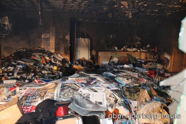 Brüchermühle - Auf der Suche nach der Ursache für den durchdringenden Brandgeruch im Haus, hatte eine Mieterin am Sonntagmorgen eine stark verkohlte Terrassentür in der Parterrewohnung entdeckt und sofort die Rettungsleitstelle informiert. Feuerwehr und Rettungskräfte fanden den 65-jährigen Hausbesitzer leblos in der Wohnung, hinter Bergen von Altpapier und Kartons, auf seinem Schlaflager. Sofort wurden Reanimationsmaßnahmen eingeleitet, doch für den Hausbewohner kam jede Hilfe zu spät. Bei Eintreffen der Feuerwehr war kein offenes Feuer erkennbar. Durch den Schwelbrand wurde die Wohnung jedoch vollständig zerstört.