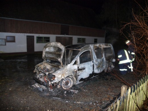 Loope - Zum Brand eines PKW auf einem Campingplatz wurden die Feuerwehr aus Loope und Engelskirchen, gegen 3.30 Uhr, in der Nacht von Samstag auf Sonntag alarmiert. Bei Eintreffen der Kameraden stand das Auto bereits in Vollbrand. Die Feuerwehr hatte den Brand, nach dem Einsatz eines Atemschutz-Trupps, schnell unter Kontrolle. Da das Fahrzeug im Freien stand und nicht wie anfangs vermutet in einem Carport, entstand kein weiterer Sachschaden. Die Brandursache ist unklar. Am PKW entstand Totalschaden. (red.-14.04.2013 18:58)