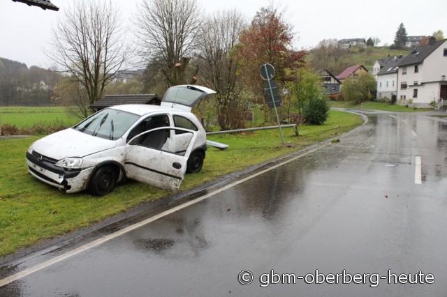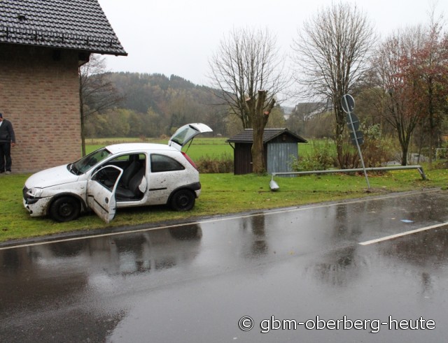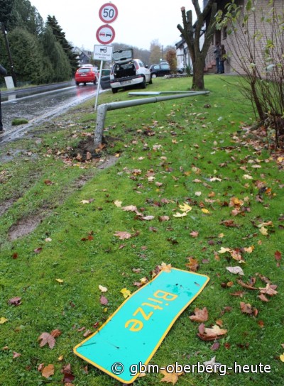 Verkehrszeichen und Laterne wurden durch die Wucht des Aufpralls völlig zerstört. Der 21-jährige Fahrer zog sich leichte Verletzungen zu. An dem nicht mehr fahrbereiten Auto entstand Totalschaden. (gbm-06.11.2013 17:11)